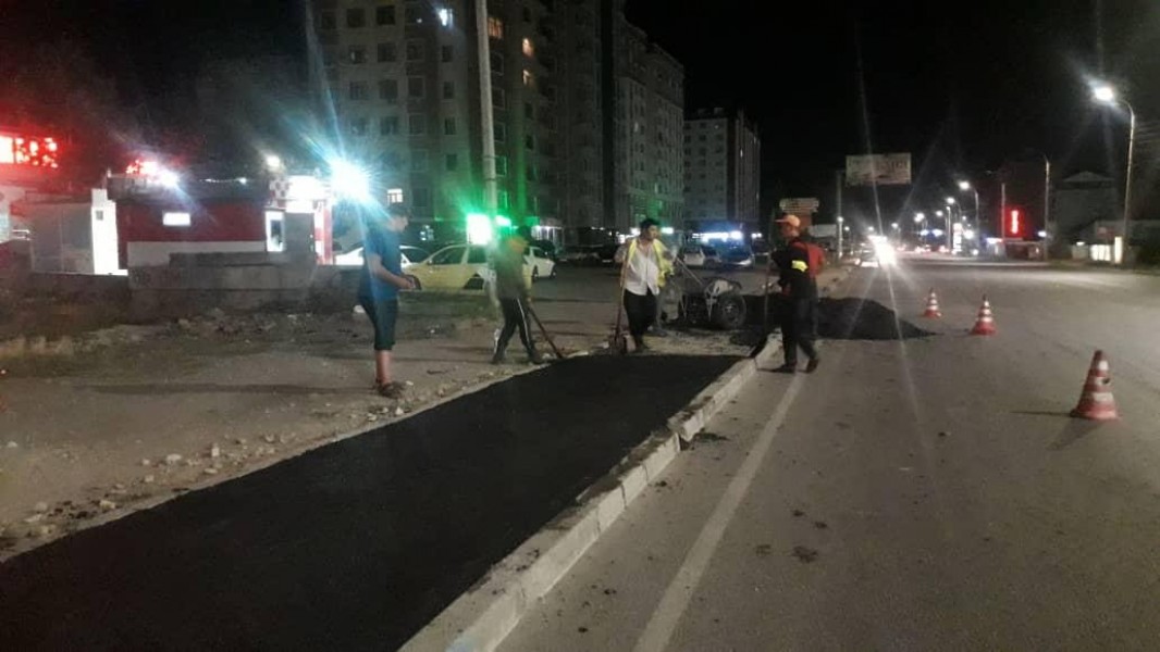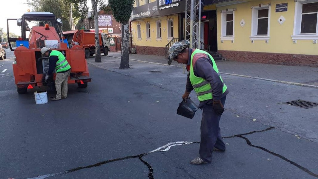 Ежедневно проводятся работы по благоустройству дорог. К примеру, с начала лета было уже залитооколо 40 000 погонных метровтрещин на улицах: Абдрахманова, Юнусалиева и Горького и установлено около 300 дорожных знаков. Также на таких улицах как: Московская, Карадарьинская, Чортекова, Алыкулова, Шопокова, Ауэзова, Г. Айтиева был проведен ямочный ремонт дорог объемом в 600 квадратных метров.
