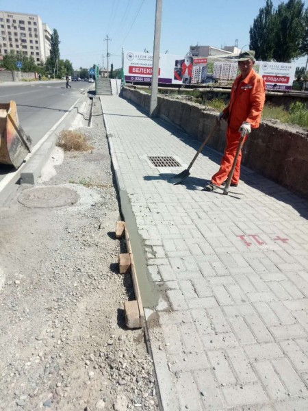 Бригады работают на 12 улицах, поэтапно они пройдут каждую из 46 дорог, построенных и отремонтированных в рамках реализации 1 фазы проекта «Развитие улично-дорожной сети города Бишкек».