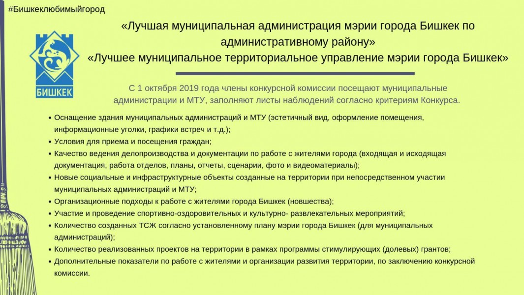 - «Лучшее муниципальное территориальное управление мэрии города Бишкек».