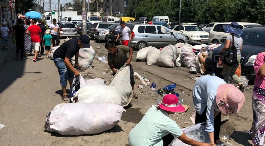 Ленинский акимиат продолжает работу по ликвидации стихийной торговли на территории ТРК “Ош базары” и прилегающих улицах.