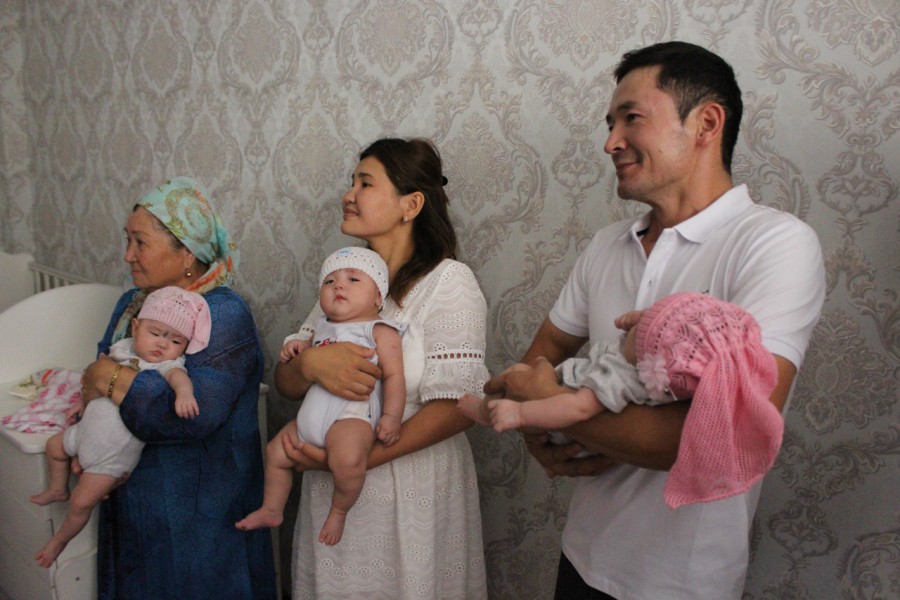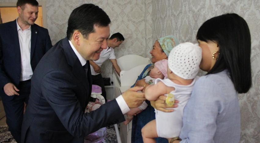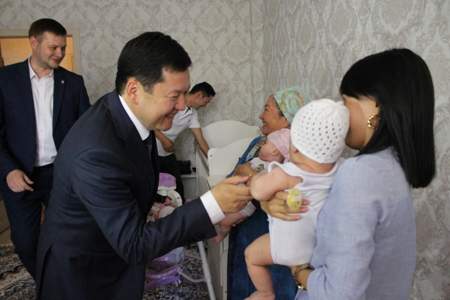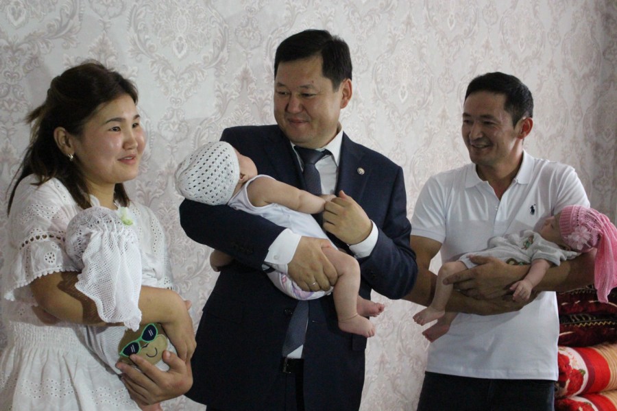 1 августа первый заместитель руководителя аппарата Президента КР Алмаз Кененбаев и аким Октябрьского района Максим Ситников проведали четверняшек и поздравили их родителей Азамата и Нурайым Смановых с новосельем.