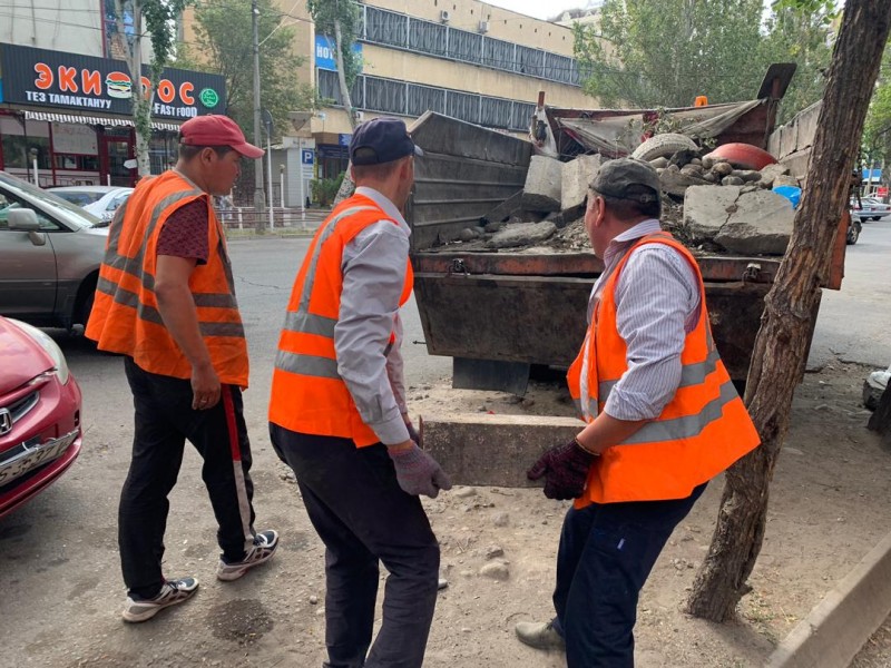 Мы до сих пор продолжаем вывозить мусор, оставленный около Дворца спорта им. К.Кожомкула. На данный момент объем составил порядка 4 куб.м. мусора. Сейчас приводим в порядок сожжённые урны, испорченные мусорные контейнеры, деревянные вазоны.
