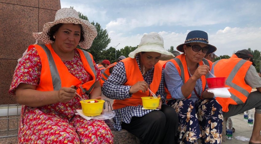 После обеда сытые и очень довольные сотрудники МП “Тазалык” продолжили свою непростую работу по очистке и благоустройству города.