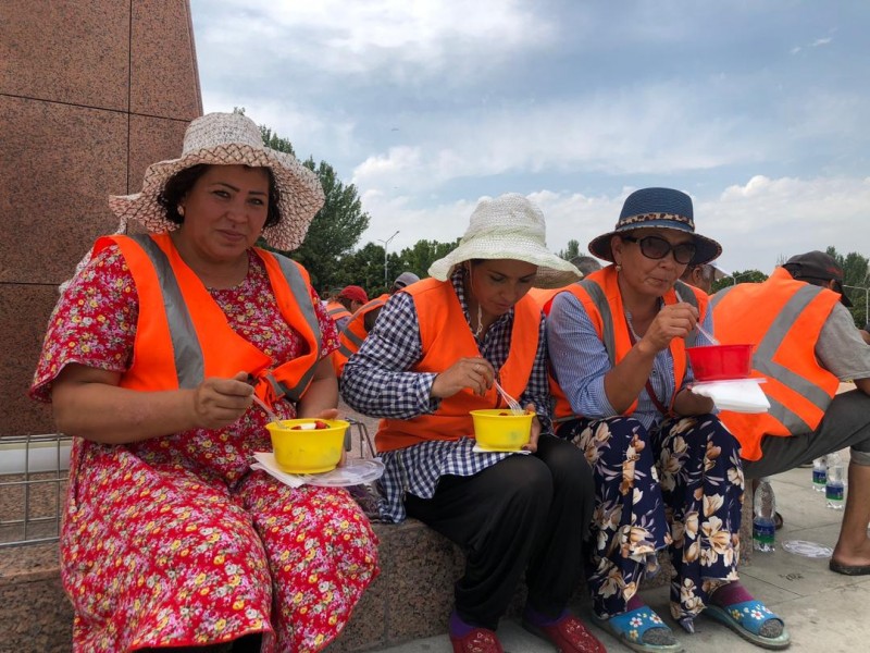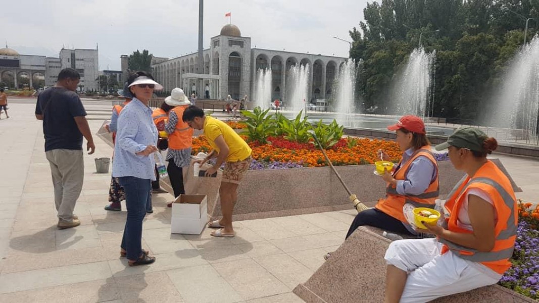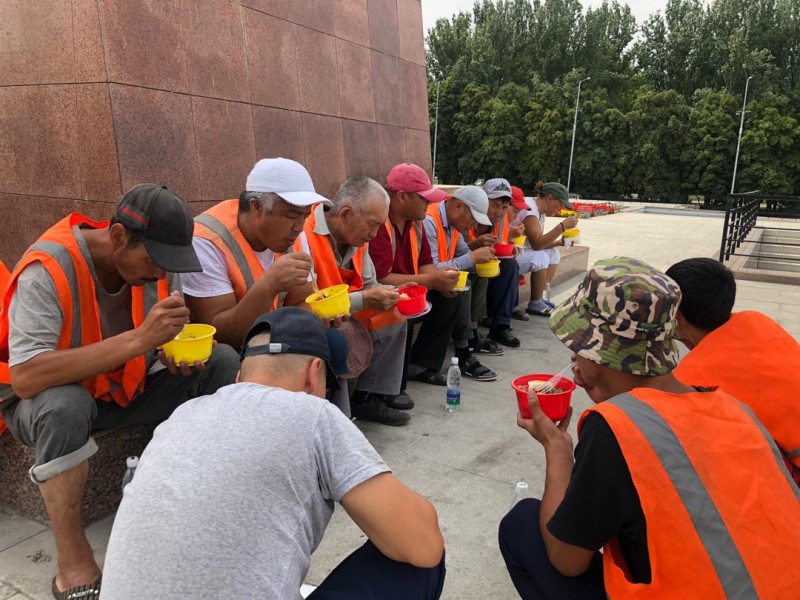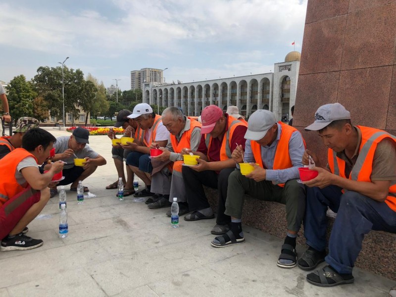 Сегодня неравнодушный горожанин владелец тайского кафе Сумсарбек Мамыралы накормил наших эжешек и байкешек “Тазалык”, которые приводят в порядок площадь Ала-Тоо после беспорядков.