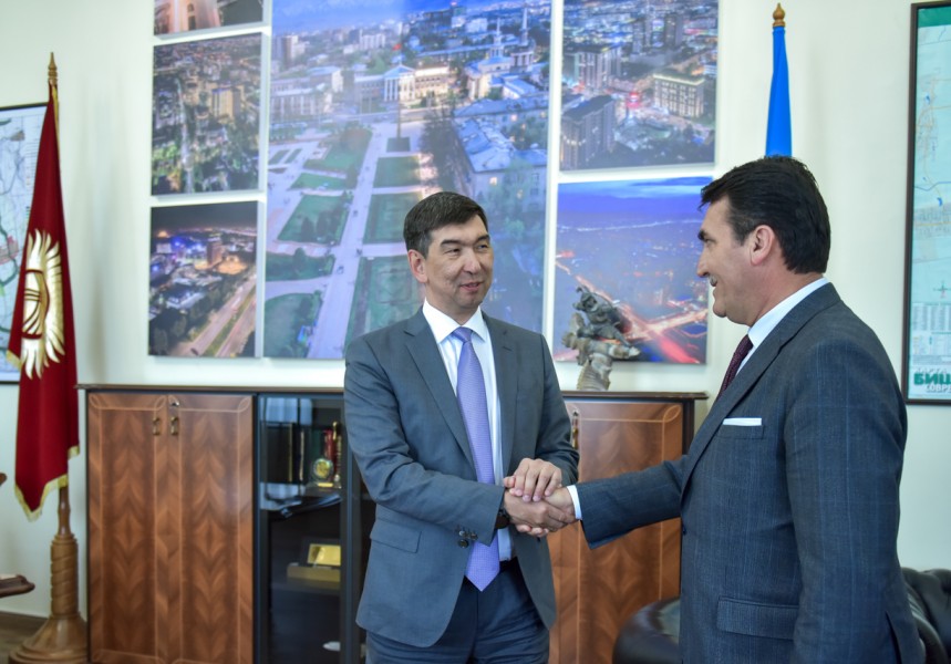 Мэр города Бишкек Азиз Суракматов провел встречу с главой района Османгази города Бурса в Турции Мустафой Дюндар.