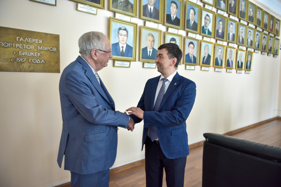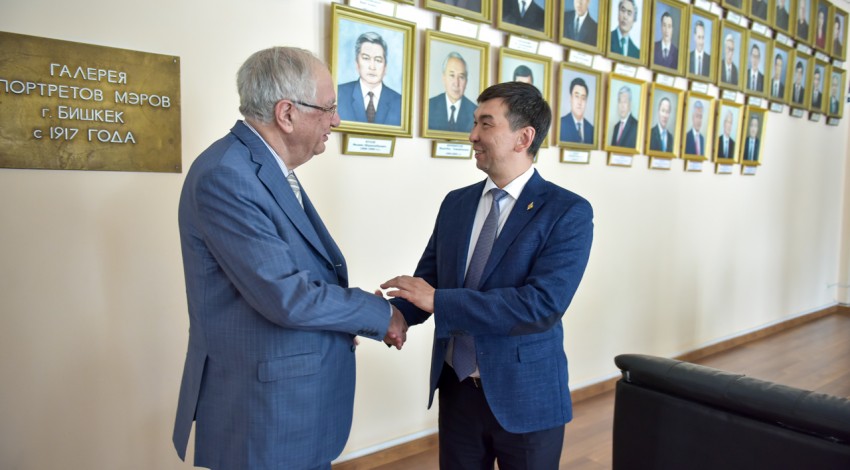 Мэр столицы Азиз Суракматов встретился с Чрезвычайным и Полномочным Послом Азербайджанской Республики в КР Гидаятом Худуш оглы Оруджевым.