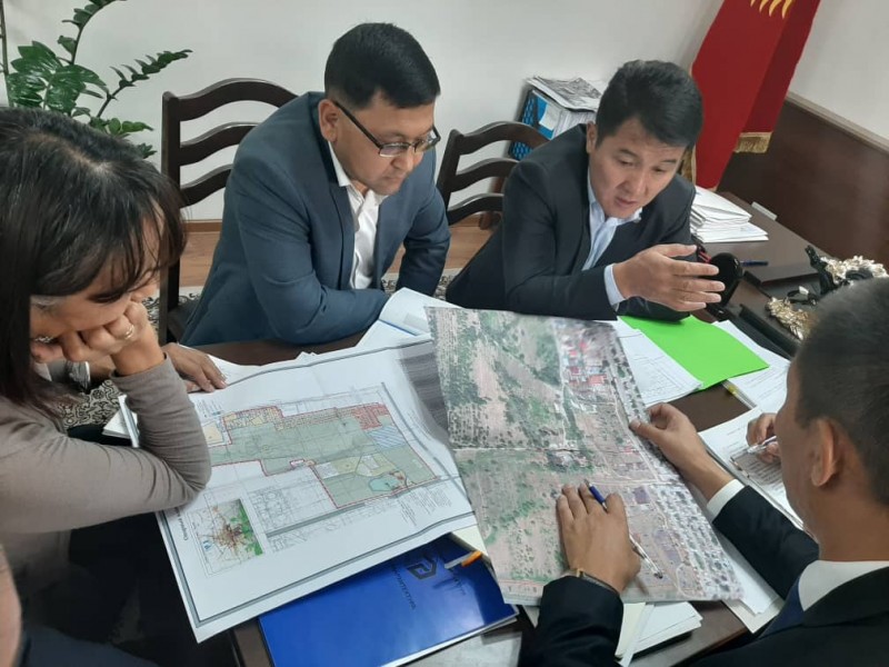 Обсуждены вопросы по второму этапу строительства продолжения нового парка на Южной магистрали, возврат земельных участков для строительства скверов по ул. Тыналиева, в Востоке-5, возле рынка «Мадина» и по ул. Садырбаева.
