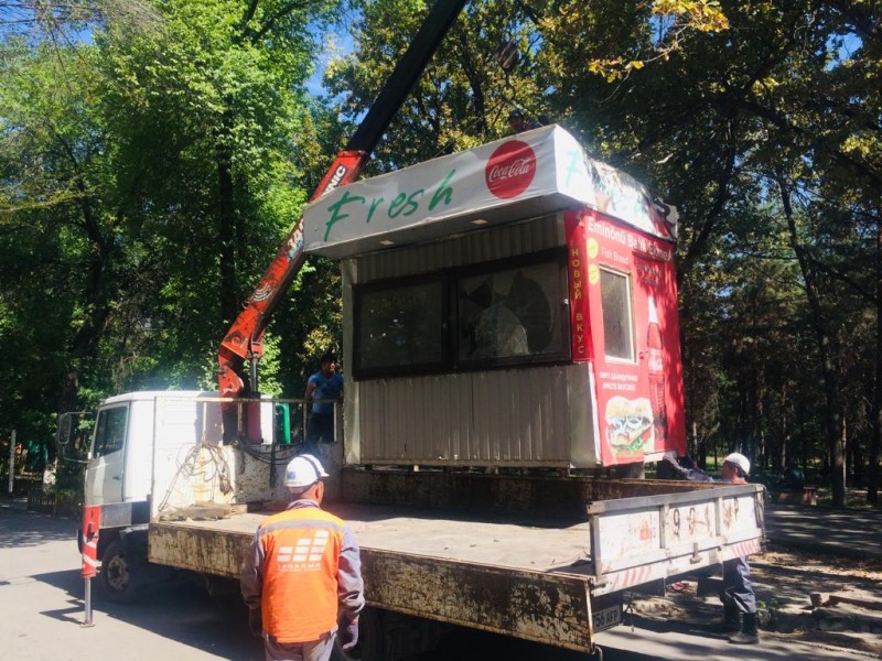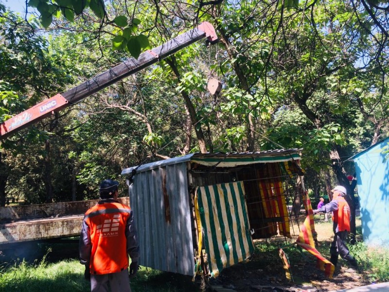 На этот раз были демонтировали 8 павильонов, установленных на территории парка им. Ата-Тюрка без разрешительных документов.