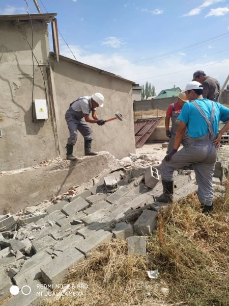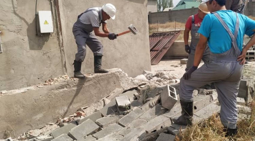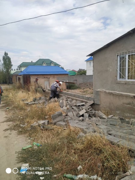 Сотрудники УЗС совместно со специальным подразделением, состоящим из сотрудников МП "Тазалык" демонтировали забор из пескоблока с выездными металлическими воротами длиною в 40 метров на пересечении улицы Ак Тон и улицы Эр-Тайлак в жилом массиве «Арча-Бешик».