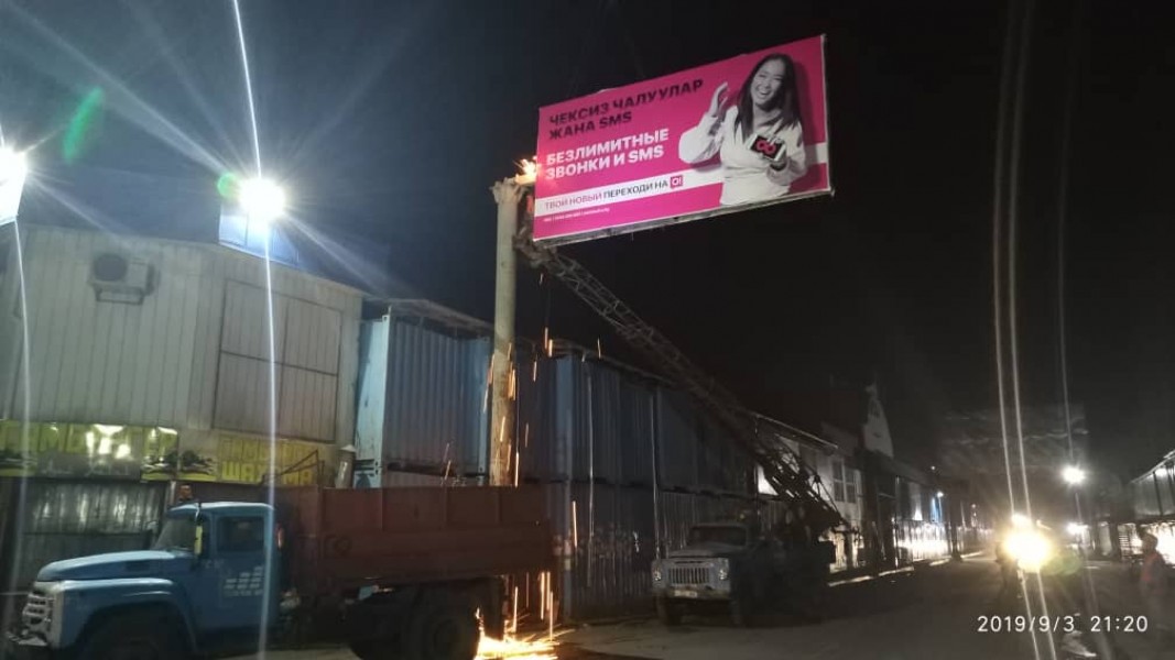 Еще демонтированы 3 незаконно установленных и не соответствующих стандартам рекламных щита размерами 6х3 метров на пересечении улиц Ибраимова и Центральной, улиц Кожевенной и Центральная, возле рынка «Алтын Тоо» по улице Кожевенной.