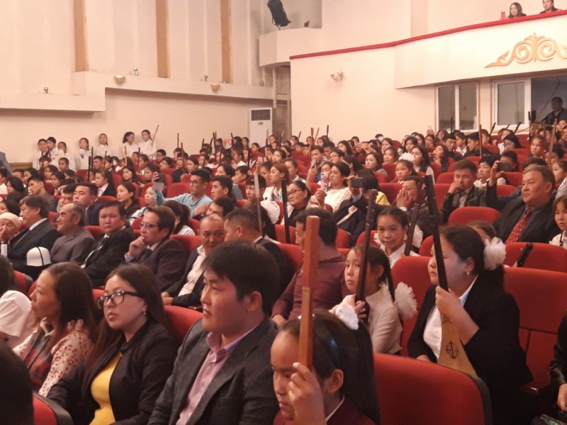В Кыргызской национальной консерватории имени К. Молдобасанова состоялся концерт с участием знаменитых комузистов, деятелей культуры и порядка 500 учеников-комузистов.