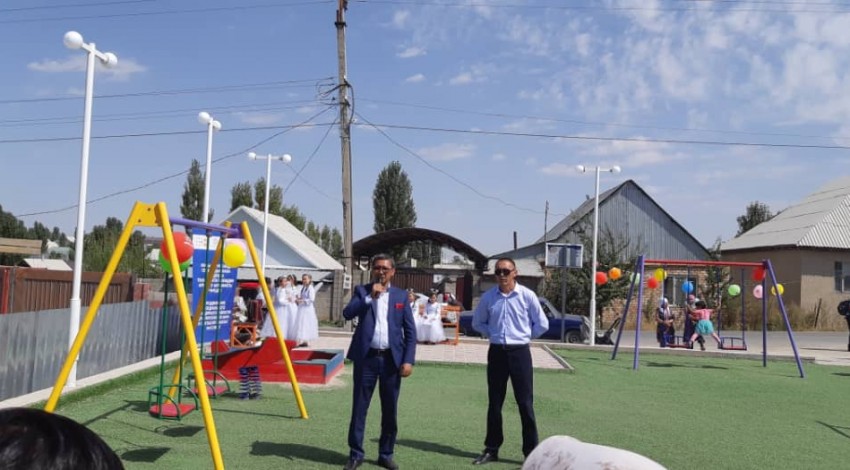 Первые тренировки на свежем воздухе провели жители, заместитель акима Первомайского района Мавлян Аскарбеков, представители международного общественного фонда (МОФ) «Инициативы Розы Отунбаевой».