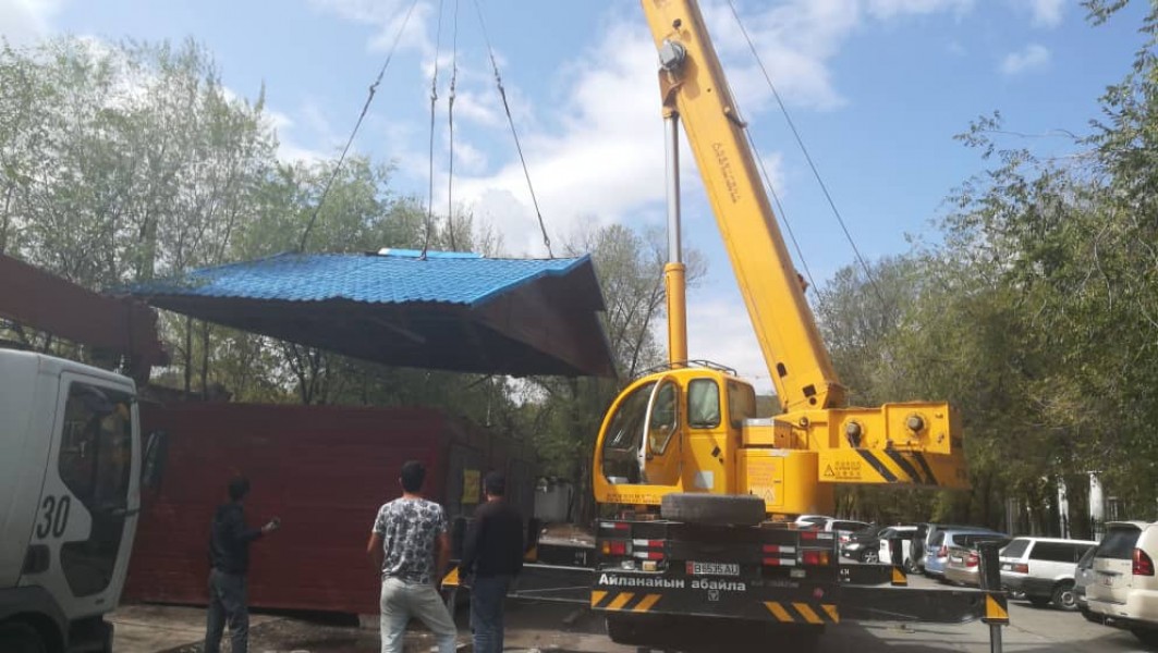 Незаконно построенный магазин «Салкын» на улице Боталиева демонтирован. Снос произвели сотрудники Управления землепользование и строительства и МП "Тазалык" мэрии города Бишкек. Площадь строения, вышедшая за границы красной линии, составила 80 квадратных метров. Также был демонтирован незаконно установленный павильон на улице Джантошева в районе Кыргызской национальной консерватории.