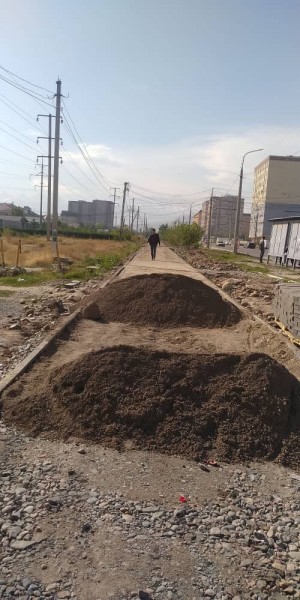 Дорогие горожане, в особенности жители микрорайона Джал! Извините за задержку, мы завершаем обустройство тротуара на восточной стороне улицы Тыналиева между улицами им. А. Масалиева и И. Ахунбаева.
