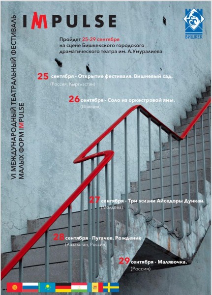 С 25 по 29 сентября на сцене Бишкекского городского драматического театра им. А.Умуралиева пройдет шестой международный театральный фестиваль малых форм IMPULSE.