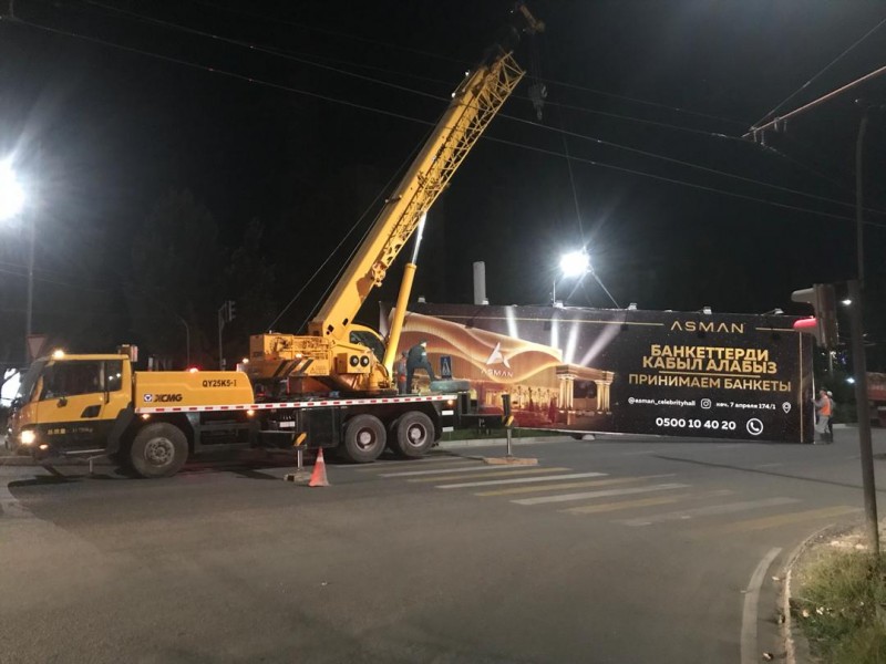 Также демонтированы все штендеры, а их 45 штук и 2 рекламных щита по проспекту Жибек-Жолу от ул. Абрахманова до ул. Курманжан Датки и на пересечении ул. Боконбаева и ул. Ибраимова.