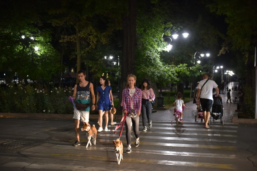 Столичные бульвары по-прежнему остаются любимым местом отдыха горожан и гостей Бишкека. Пока тепло, можно спокойно отдохнуть, почитать книги на свежем воздухе, наслаждаясь пением птиц. С наступлением темноты бульвары меняются до неузнаваемости, загораясь яркими огнями.