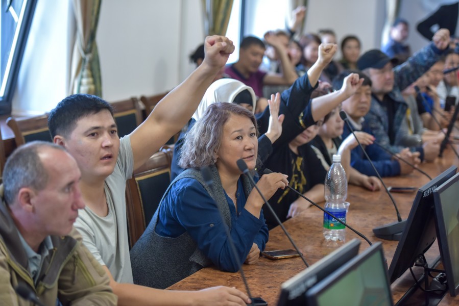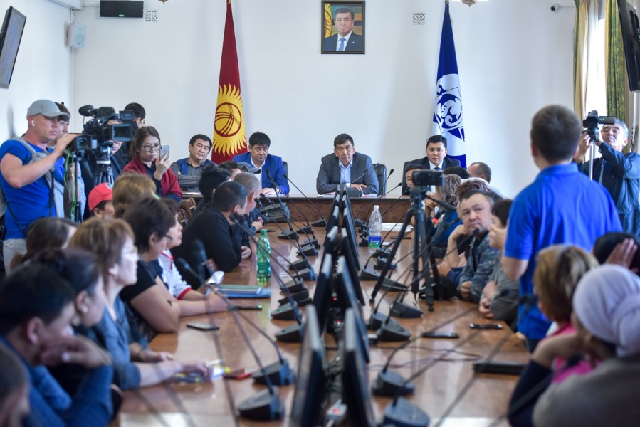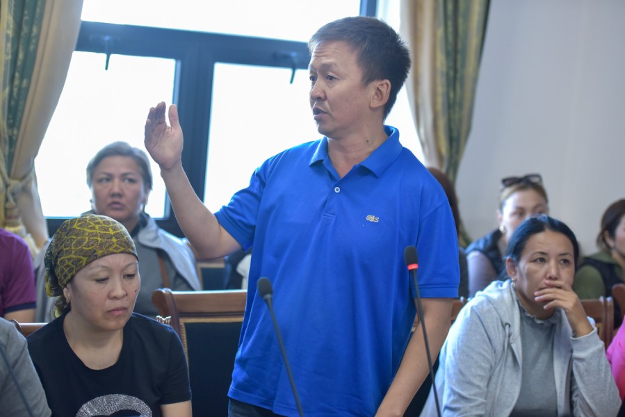 В зале заседания столичного муниципалитета мэр Азиз Суракматов встретился с торговцами Ошского рынка.
