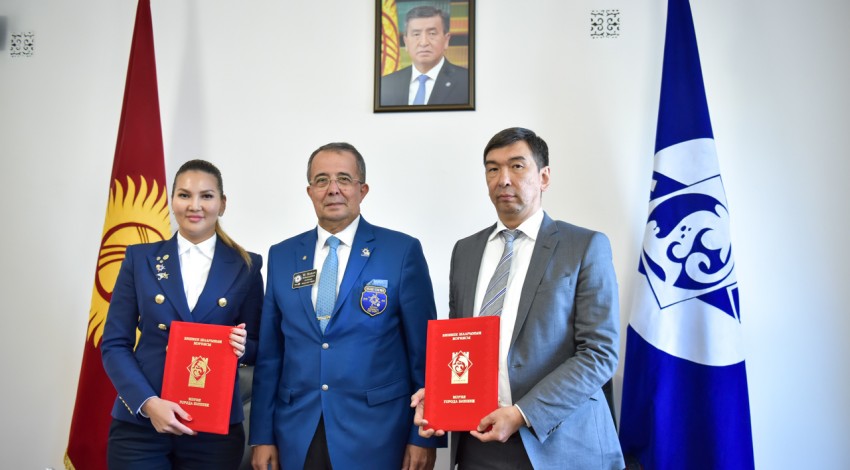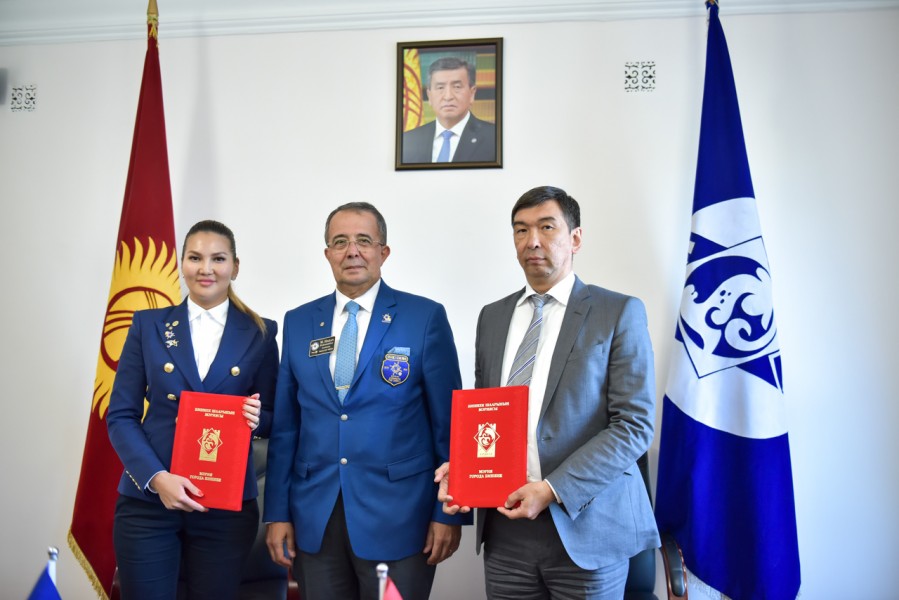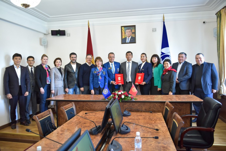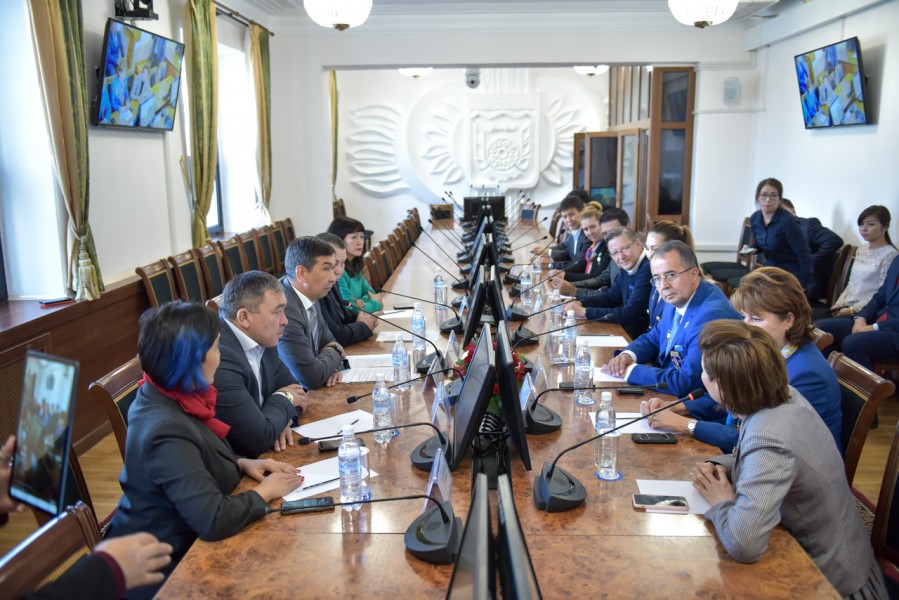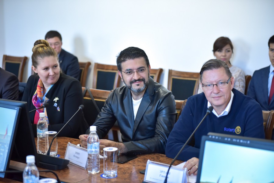 Мэр города Бишкек Азиз Суракматов встретился с членами делегации общественного объединения «Ротари Клуб Бишкек» во главе с губернатором округа 24-30 Ротари Интернешнл Хаканом Караалиоглу и президентом «Ротари Клуб Бишкек» Акиной Султановой.