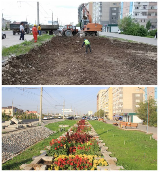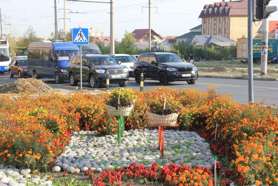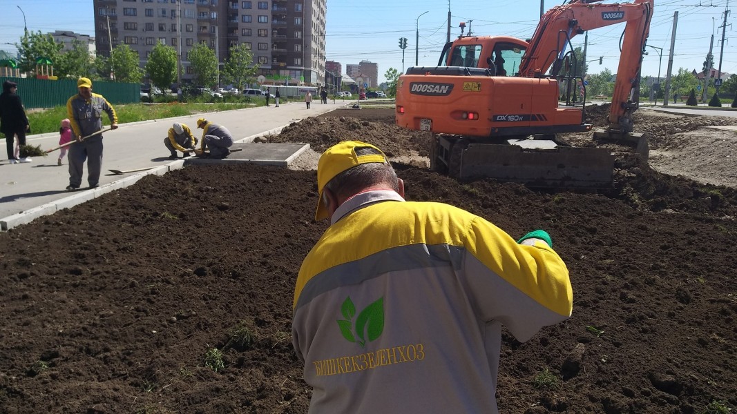 Помимо цветочных клумб, сотрудники «Бишкекзеленхоза» засеяли газон на участке площадью 3200 квадратных метров, а откосы выложили камнями.