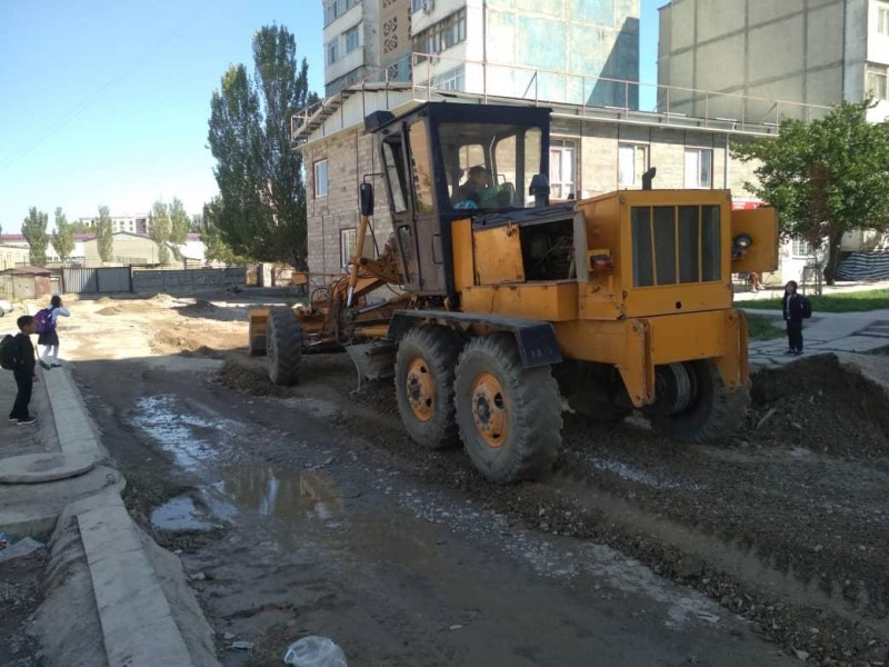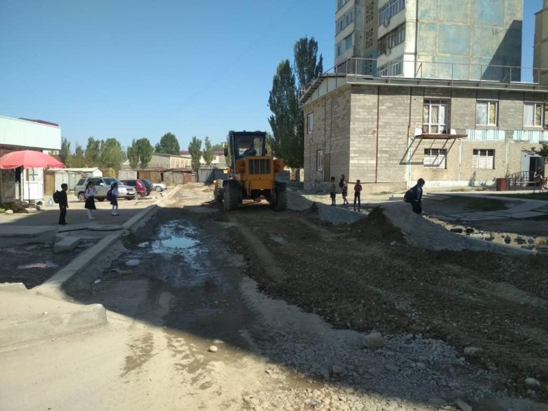 Пока погода радует, муниципальное предприятие «Бишкекасфальтсервис» приступило к ремонту трех улиц в микрорайоне «Джал».