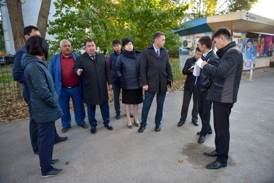 Ранним утром вице-мэры столицы, Татьяна Кузнецова и Мирлан Амантуров провели выездное совещание на территории Октябрьского района.