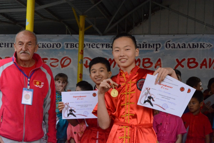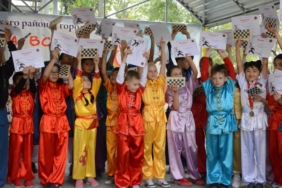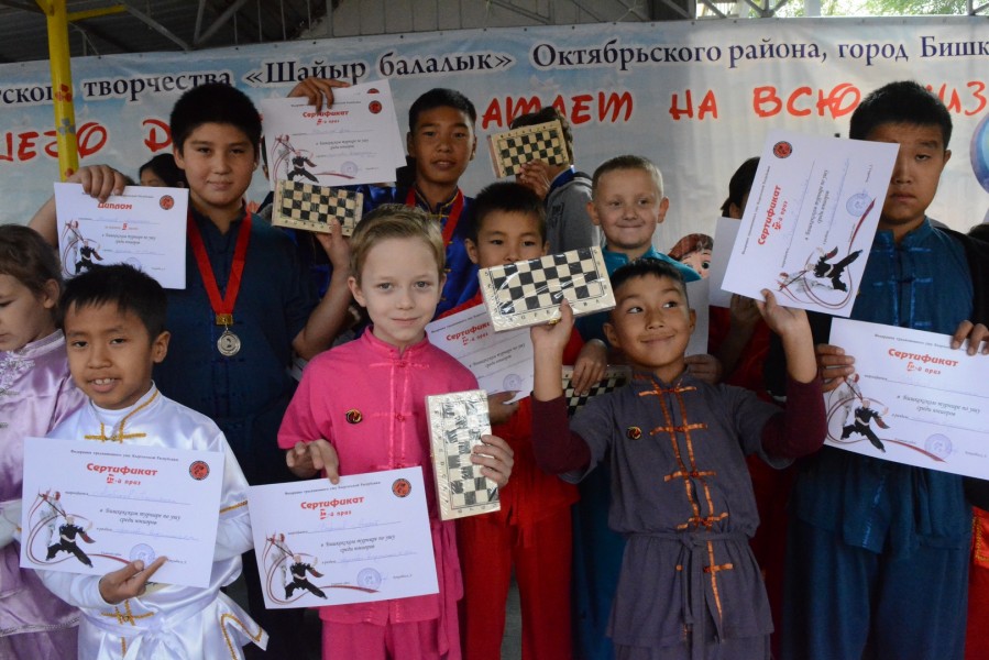 Детей поддерживали глава управления физической культуры и спорта Даулет Досалиев и представители федерации традиционного ушу КР.