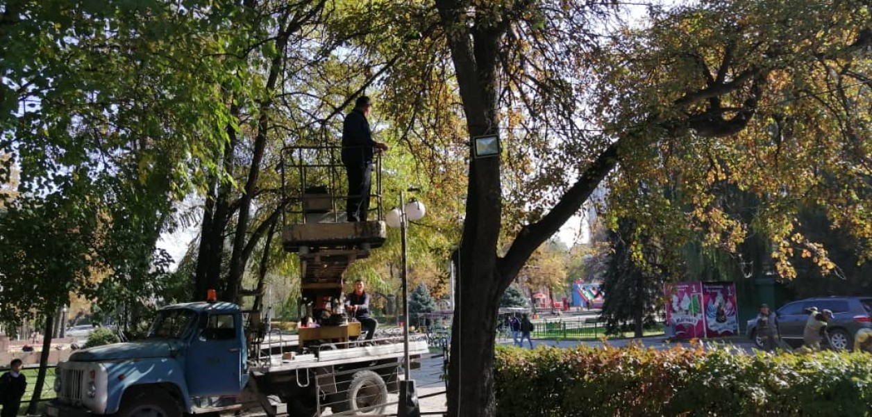 Накануне сотрудники муниципального предприятия (МП) «Бишкексвет» совместно с МТУ №13 провели ревизию проводов на опорах наружного освещения в Дубовом парке, на бульваре Эркиндик. К сожалению, стихийные точки по продаже игрушек, мороженного и другие незаконно подключаются к нашим опорам. Но мы активно работаем над полной ликвидацией «незаконки» в столице.