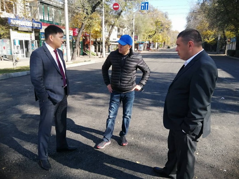 Прямо сейчас вице-мэр столицы Уланбек Азыгалиев, курирующий вопросы архитектуры и строительства вместе со строителями находится на дорожных работах по улице Московской.