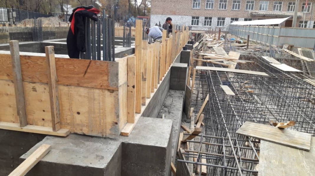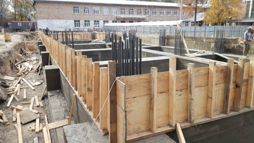 Строительная компания “Максат”, выигравшая конкурс, строит новый двухэтажный учебный корпус, который соединится с основным зданием школы через отапливаемый переход.