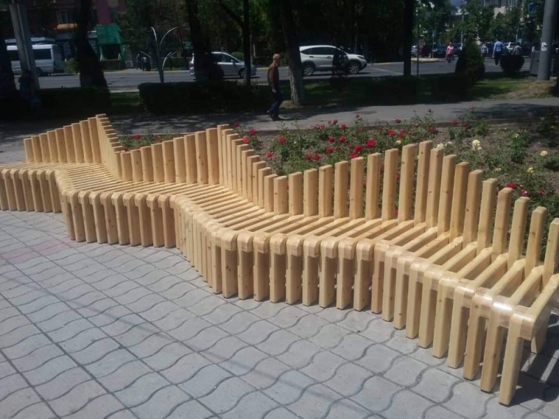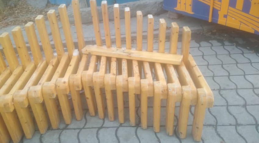 Парклеты очень тяжелые, сотрудники МП «Бишкекзеленхоз» собирали их на месте. Например, чтобы поднять только одну часть, понадобилось 4 человека.