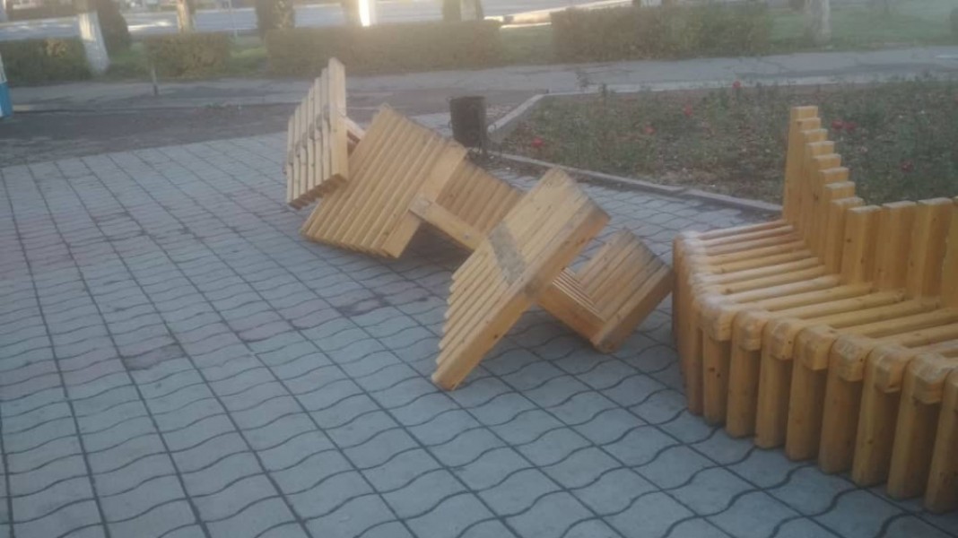 Сильно повреждены скамейки в районе Кыргызского государственного технического университета (Политех).