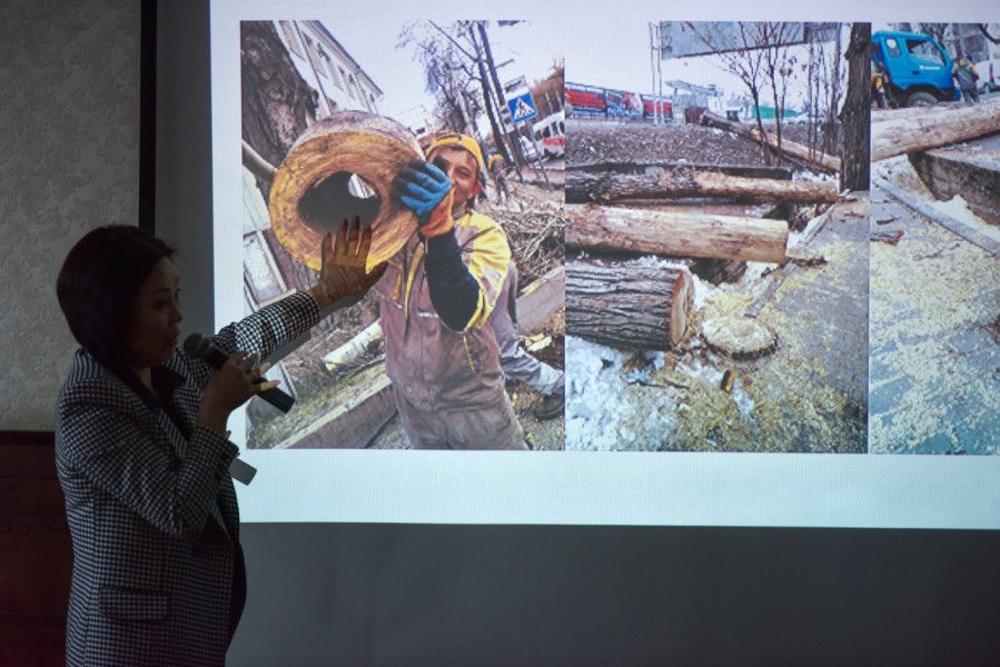 Глава «Бишкекзелехоза» Эльнура Жолдошева рассказала участникам обсуждений о планах посадок, уходе и сносу аварийных деревьев, а также о регламенте предприятия. Э. Жолдошева отметила, что создание электронного реестра по зеленым насаждениям позволит качественно планировать работу по защите каждого дерева и объективно отслеживать динамику развития зеленого фонда. Также она напомнила, что своевременный уход деревьев, расположенных внутри дворов, на территории частной собственности, возлагается на ТСЖ, МТУ, организации.