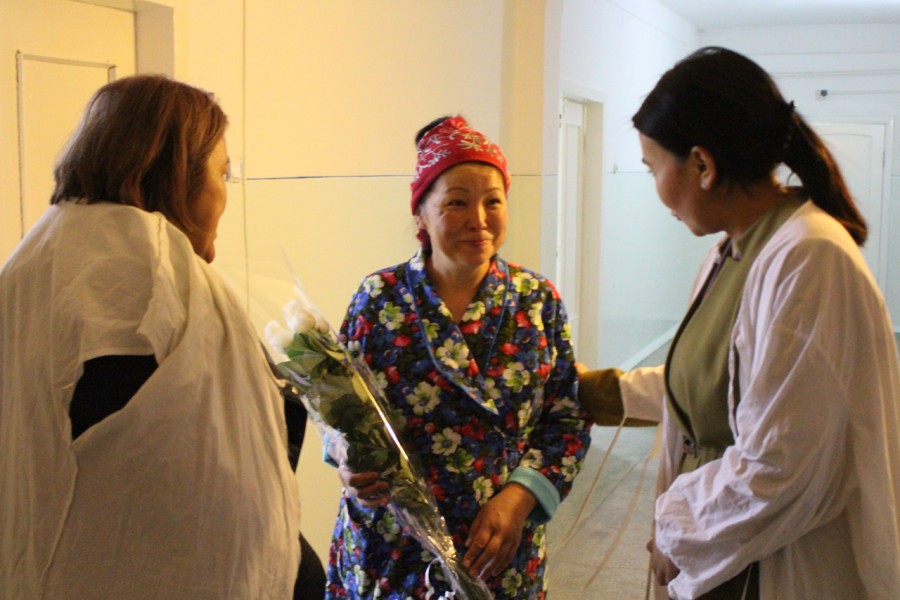Маму тройни проведали глава районного управления социального развития Рейна Султанмуратова, заведующий социальным отделом Октябрьского акимиата Зарема Омурзакова.
