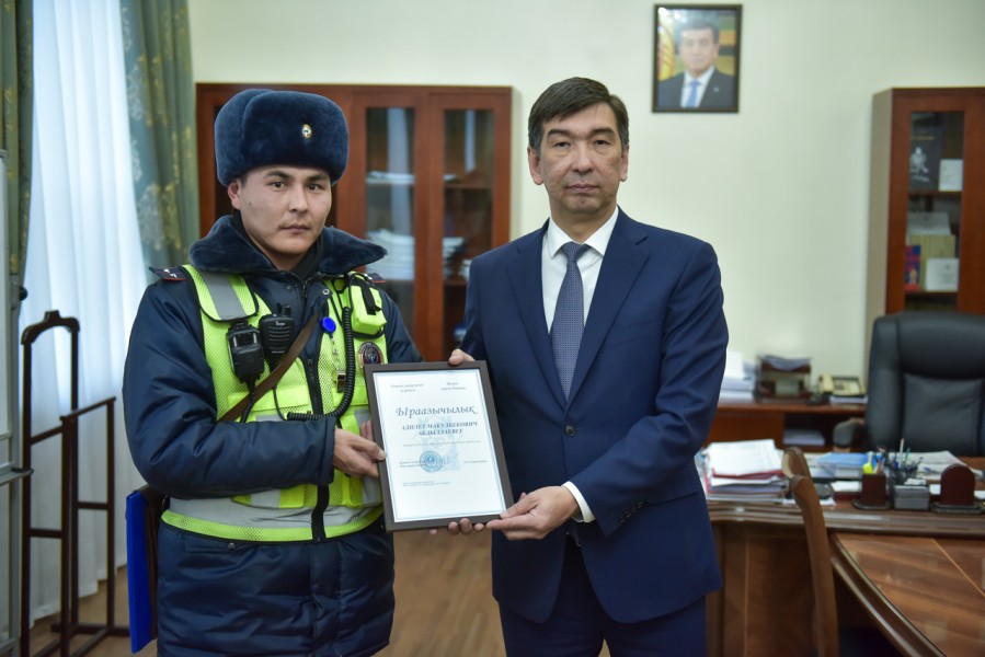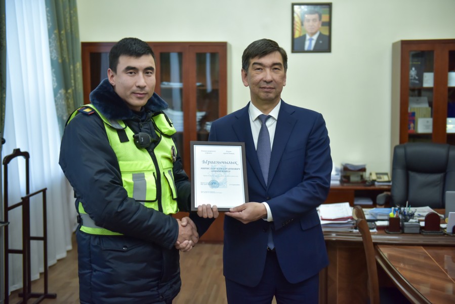 Глава муниципалитета выразил искреннюю признательность горожанам за проявленную храбрость, вручил Светлане Тургумбаевой именные часы мэрии города Бишкек и благодарность сотрудникам управления патрульной службы милиции: Адилету Абдылдаеву, Мирисламу Алимбекову и старшему оперуполномоченному службы криминальной милиции Медербеку Таалайбекову.