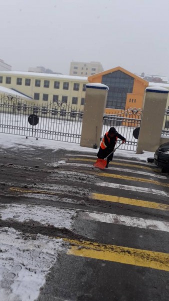 Сотрудники МП «Тазалык» продолжают работы по очистке столичных улиц, тротуаров, прибордюрной части остановочных комплексов от снега и подсыпке городских дорог.