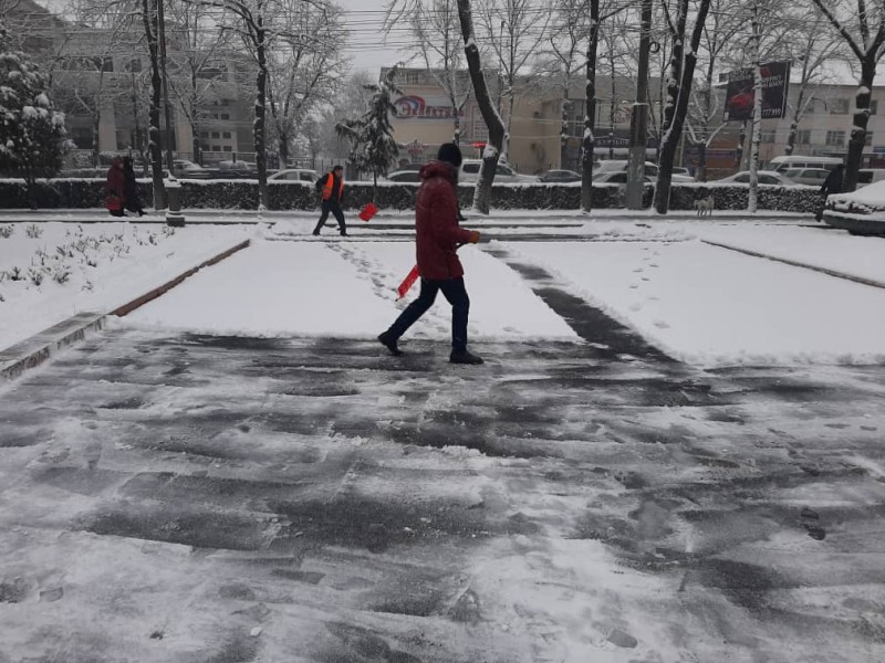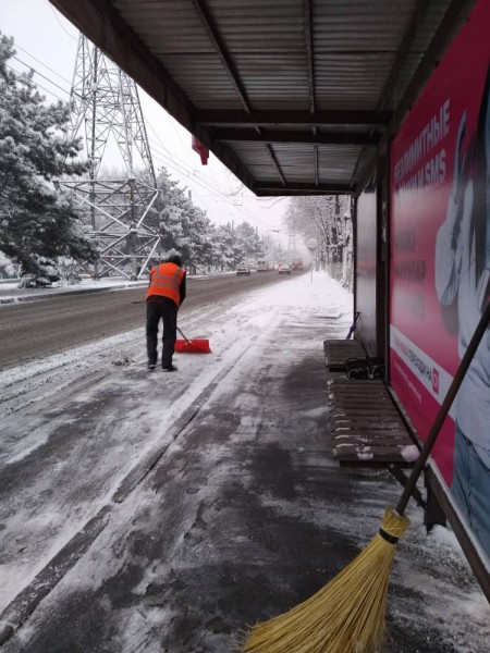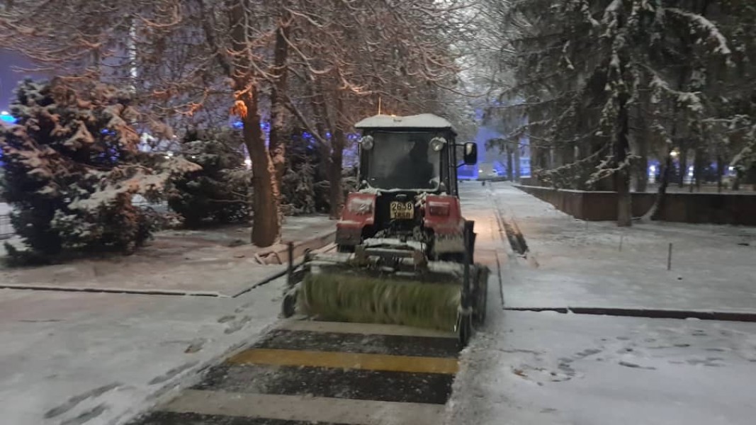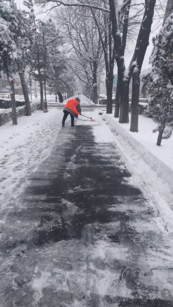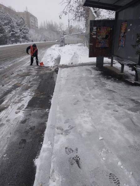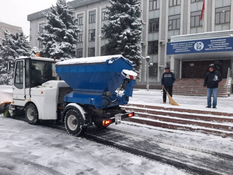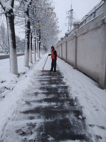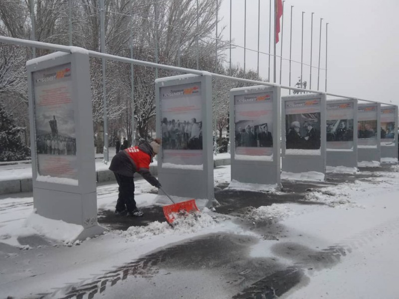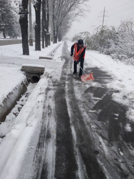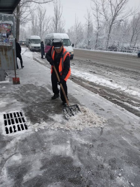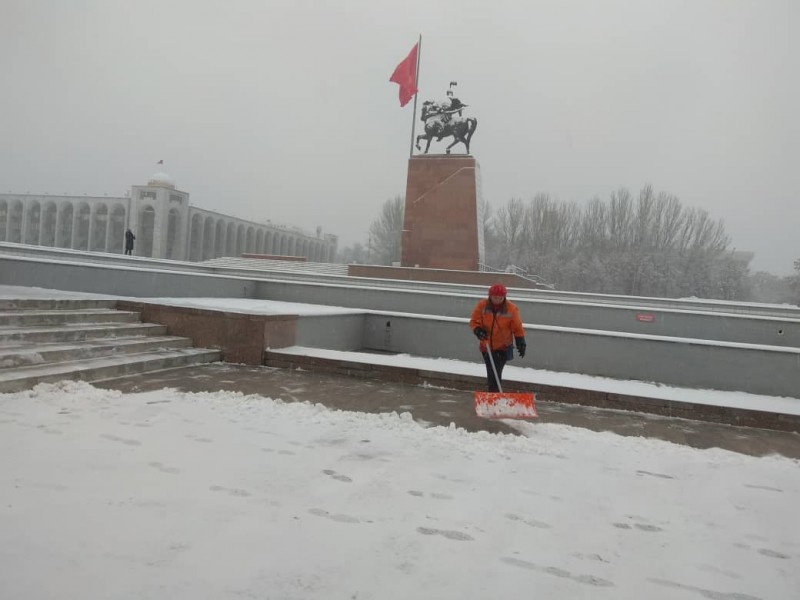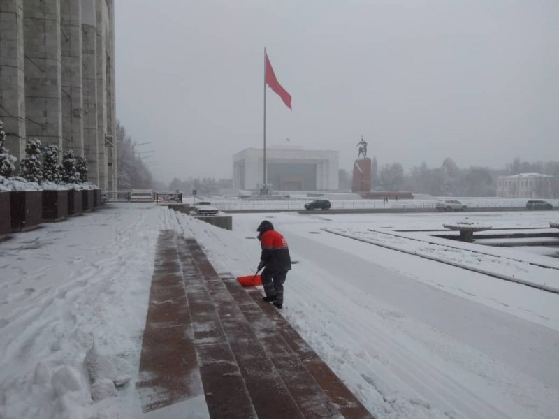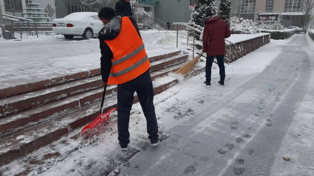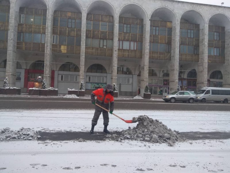 В штатном режиме по городу Бишкек на уборку снега вышли порядка 700 дворников «Тазалыка».