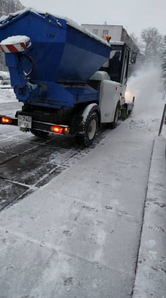 Работы по подсыпке дорог солью начались глубокой ночью, мы были на улицах города уже в 2 часа. Было израсходовано порядка 196 тонн технической соли. На борьбу со снегом вышло 25 сотрудников дорожно-эксплуатационного отдела с привлечением 25 единиц спецтехники, снегоуборочных машин на базе МАЗ, 2 пескоразбрасывательных машины на базе ЗИЛ-130 КДМ, 2 фронтальных погрузчика, 4 универсальные машины, 5 тракторов «Беларус».