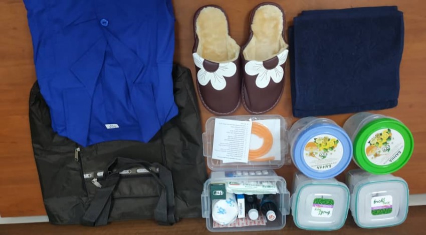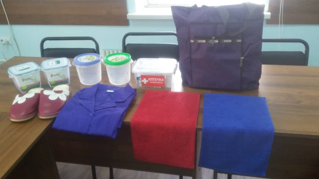 Теперь у наших добрых горожан новая комнатная обувь, халат, сумка, полотенце, посуда для доставки горячего питания и аптечка.