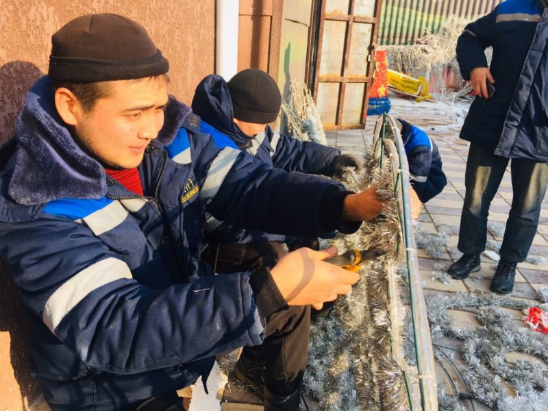 Установкой ели занимаются сотрудники двух муниципальных предприятий - "Бишкексвет" и "Тазалык".