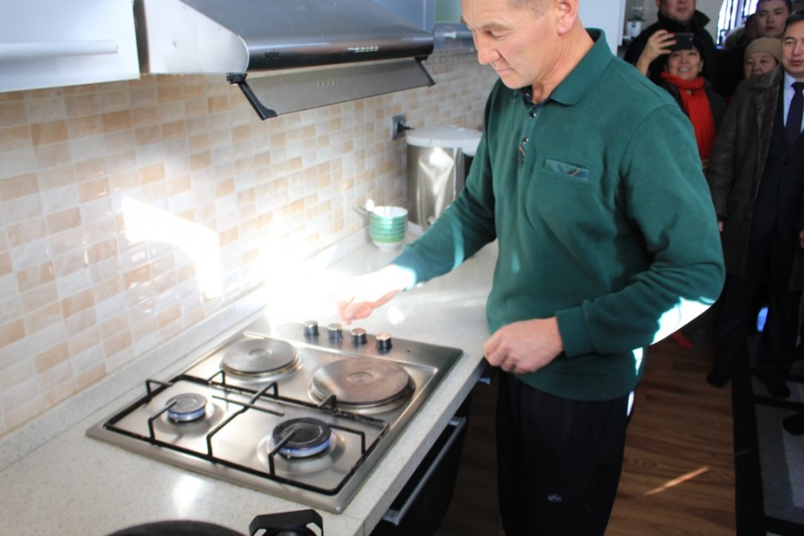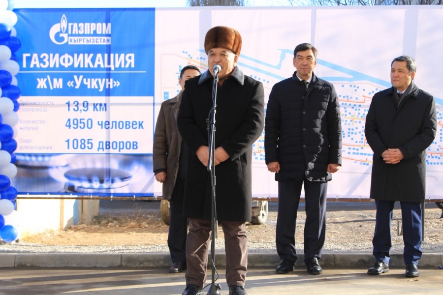 На церемонии пуска газового вентиля приняли участие жители массива "Учкун", мэр столицы Азиз Суракматов, генеральный директор «Газпром Кыргызстан» Болот Абилдаев.