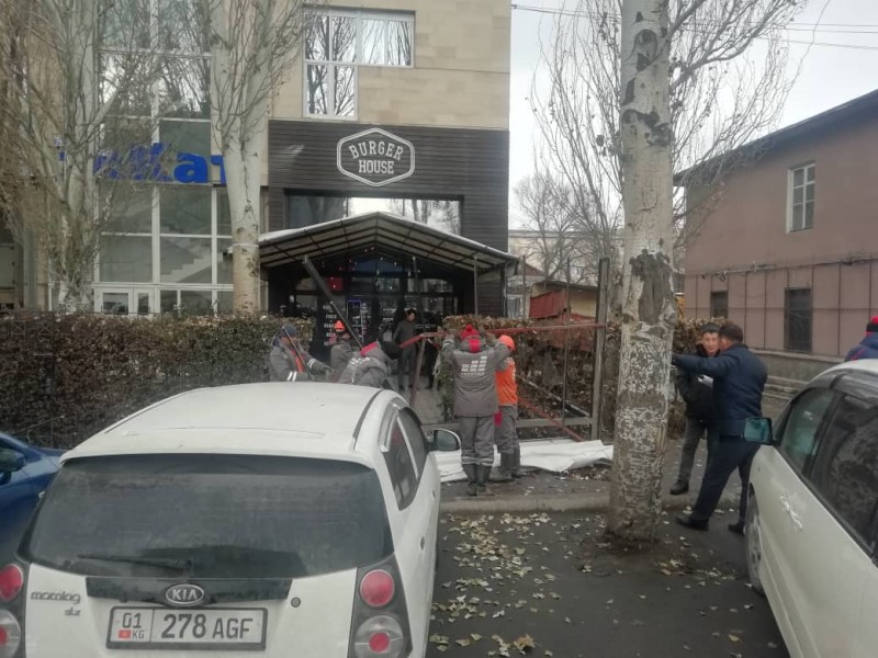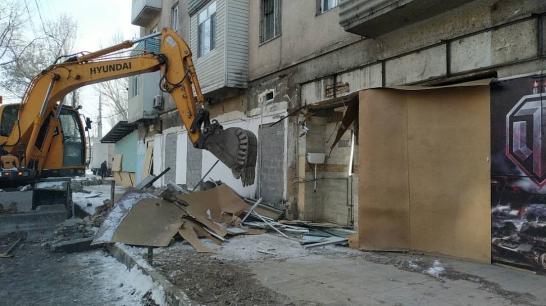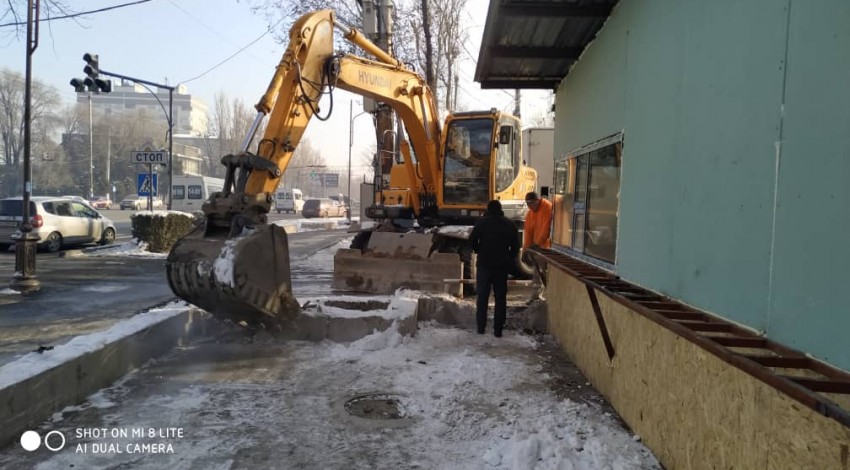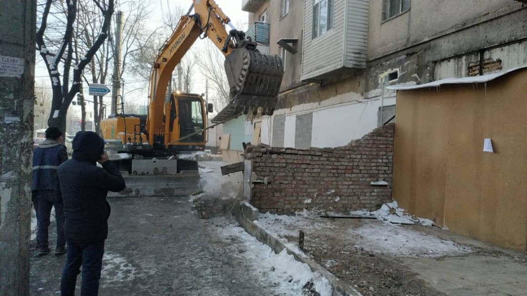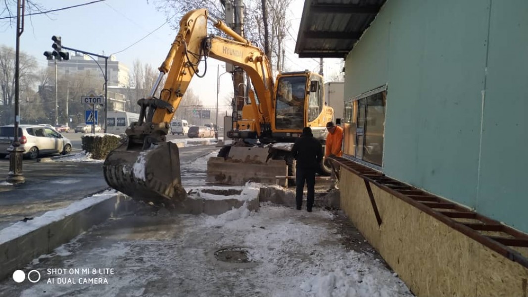 Снесен капитальный забор магазина «Дасторкон» и санузел компьютерного клуба на перекрестке проспекта Чуй и 7 апреля, там будет строиться пешеходная зона для безопасного отдыха горожан.