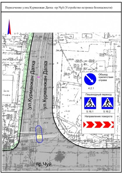 Специалисты отдела дорожно-транспортного развития муниципального предприятия «Бишкекглавархитектура» разработали схемы «островков безопасности» для горожан-пешеходов на перекрестках дорог Бишкека.