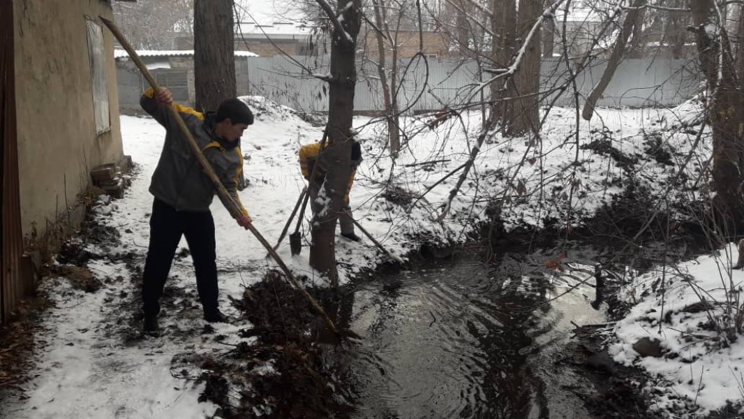 Сотрудники МП «Бишкекзеленхоз» продолжают вручную и механизированным путем очищать коллекторно-дренажные сети в Первомайском и Свердловском районах столицы. Предпринятые меры приведут к снижению грунтовых вод.