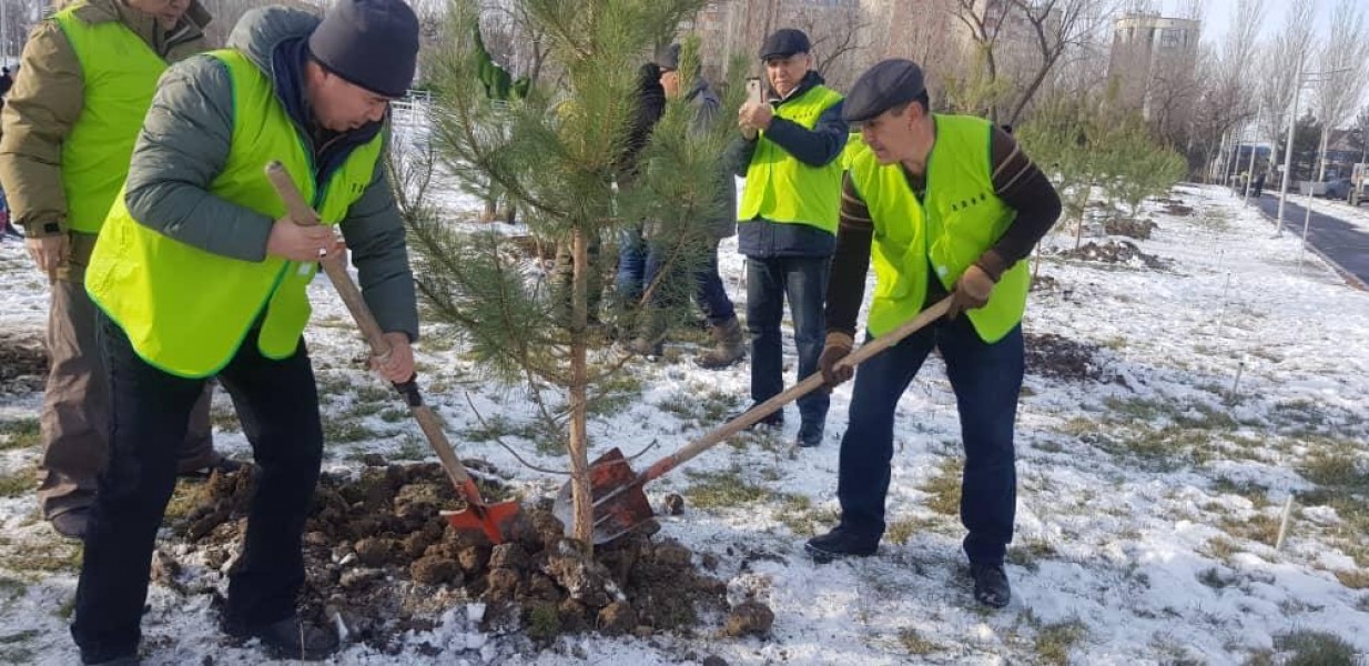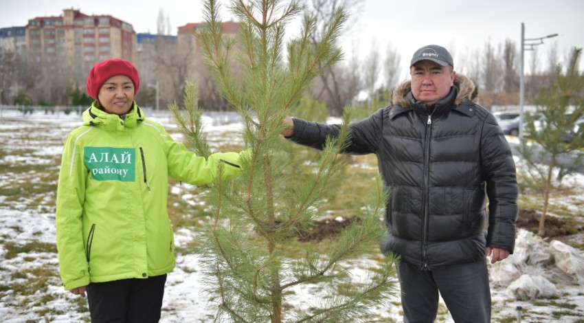 Сегодня жители Алайского района посадили порядка 100 крупномерных саженцев сосны в новом парке «Ынтымак» на южной магистрали.