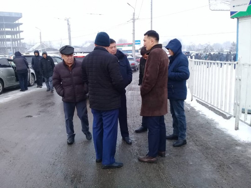 Сотрудники Первомайского акимиата во главе заместителя главы района Мавляна Аскарбекова совместно с представителями патрульной милиции, транспортников мэрии и МТУ №14 провели выездное совещание по разгрузке незаконно припаркованных машин на проезжей части вокруг Западного автовокзала.