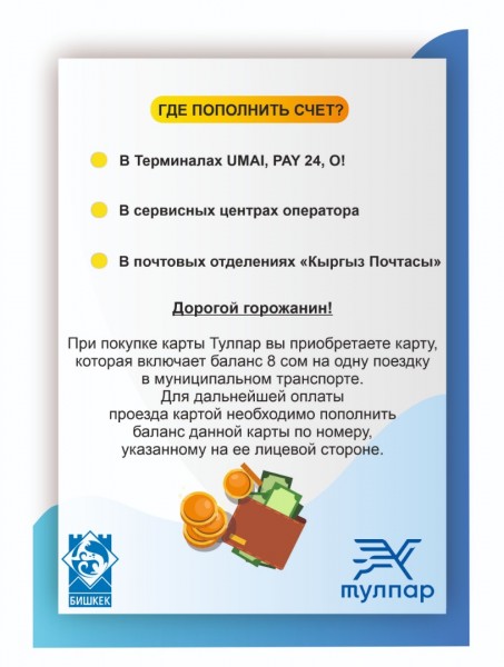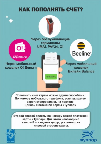 Пополнить бесплатно карту «Тулпар» можно в терминалах мобильного оператора «О!» и платежной системе "Pay24"