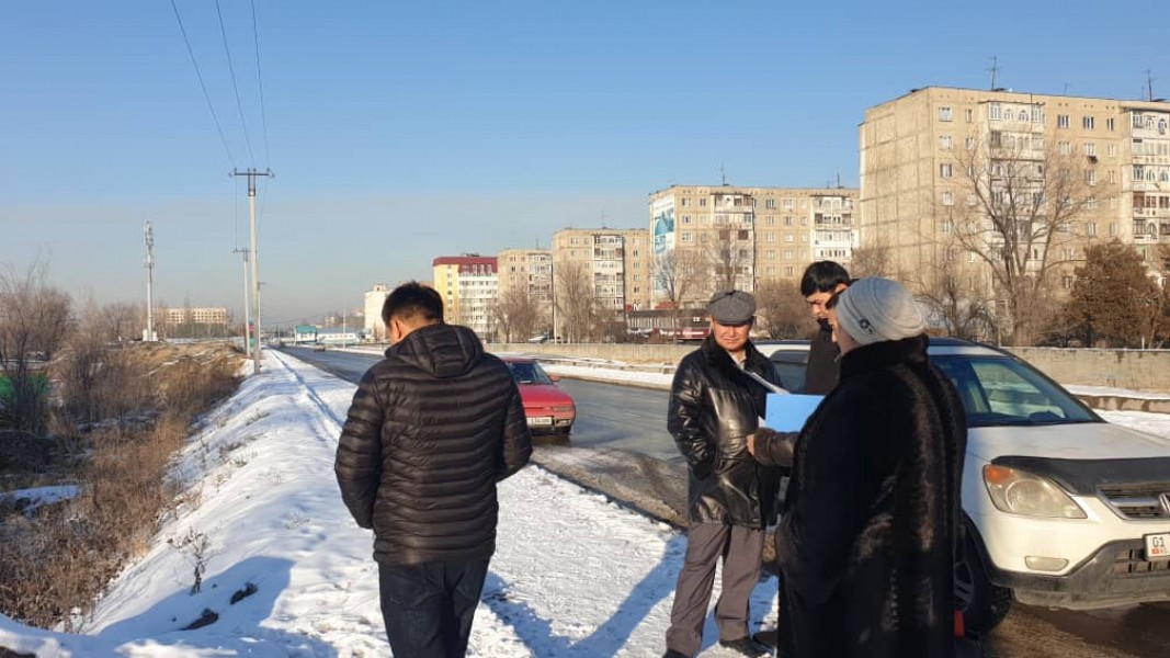 Сотрудники отдела объектов облегченного типа МП «Бишкекглавархитектура» вместе с городскими службами на плановом пешем обходе города.