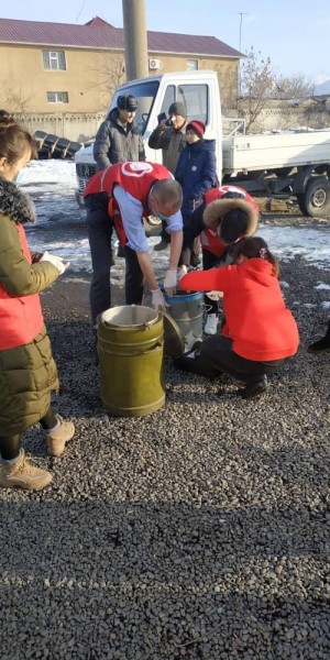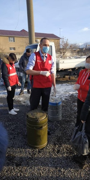 Господин Чарльз Гаррет совместно с волонтерами Красного Полумесяца Кыргызстана накормили постояльцев приюта горячим рисовым супом и свежим хлебом. Супчик привезли в специальных пищевых контейнерах, горяченькое получил каждый постоялец.