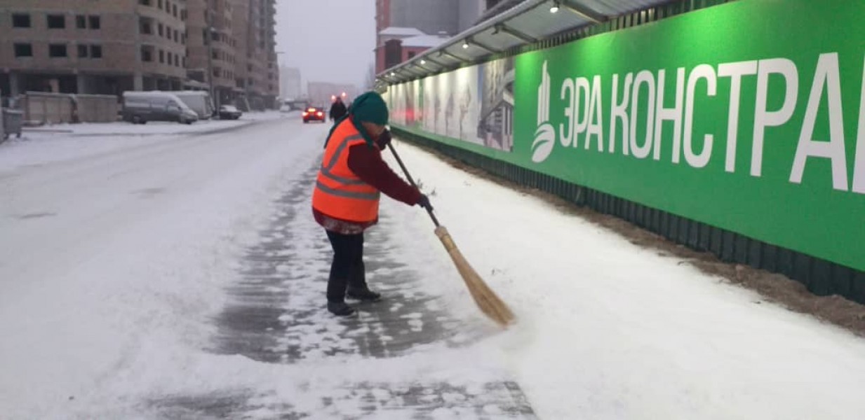 Доброе морозное утро! Сегодня на очистку столичных улиц и тротуаров от снега любимый Тазалык вышел еще в 2 ночи.